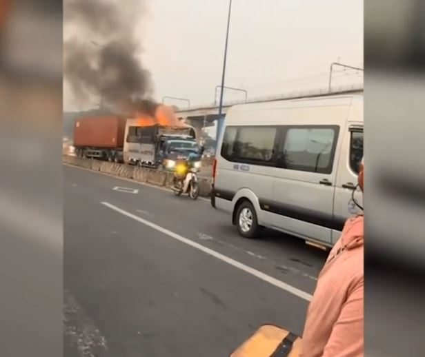 Thùng xe tải bốc cháy, tài xế chạy thẳng đến trụ sở cảnh sát nhờ giúp đỡ