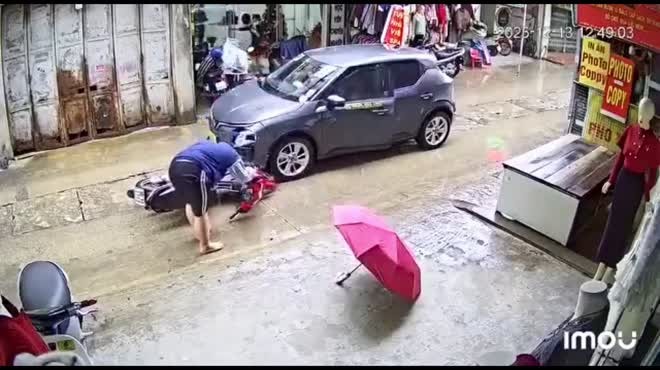 Cầm ô khi điều khiển xe máy húc thẳng đầu ô tô, tài xế bị phạt nặng đến mức nào?