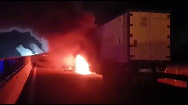 Ô tô 5 chỗ bốc cháy dữ dội trên Quốc lộ 1 sau tiếng nổ lớn