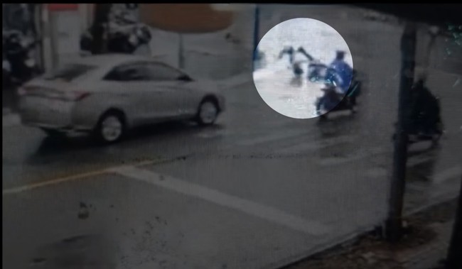Video: Leo lên xe giữa đường ngập, chị gái khiến em trai "uống no nước"